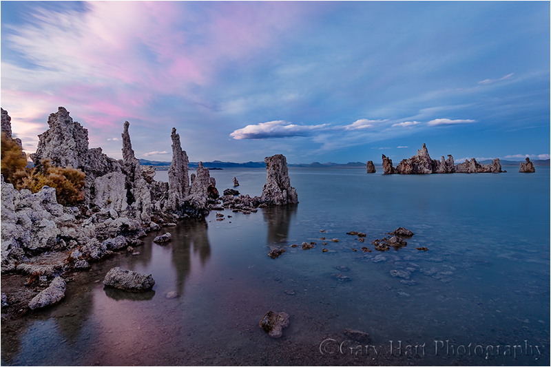 The above image was at the tail end of a particularly vivid Mono Lake sunset. The air was clean and I was very fortunate to get not only clouds and color, but also perfectly calm wind that turned the lake’s surface to glass. As you may have noticed by the 15 second exposure, the color lasted quite long that night, and this was toward the end of the show.