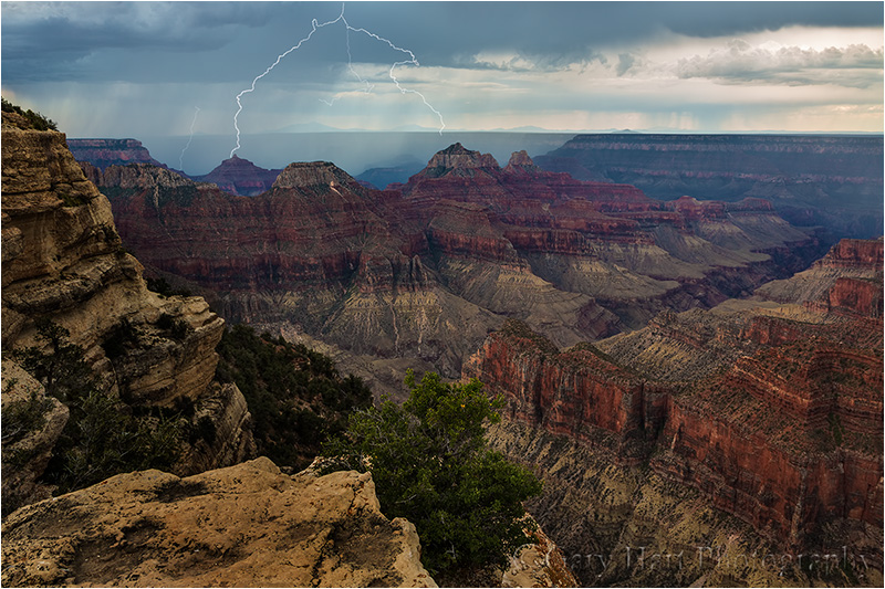 We were in the final miles of a morning’s journey from the Grand Canyon’s popular South Rim to its more isolated North Rim. Safely stashed in the back of the car was the week’s bounty: memory cards, laptops, and backup drives brimming with the Grand Canyon monsoon images we’d come to photograph, including our holy grail, a dozen or so daylight lightning frames apiece. This four-hour detour to the North Rim was a last minute decision with no expectations—whatever we got here would be gravy.
