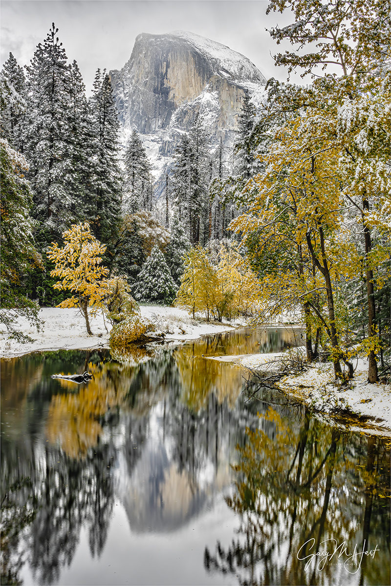 Autumn Snowfall Reflection, Half Dome, Yosemite