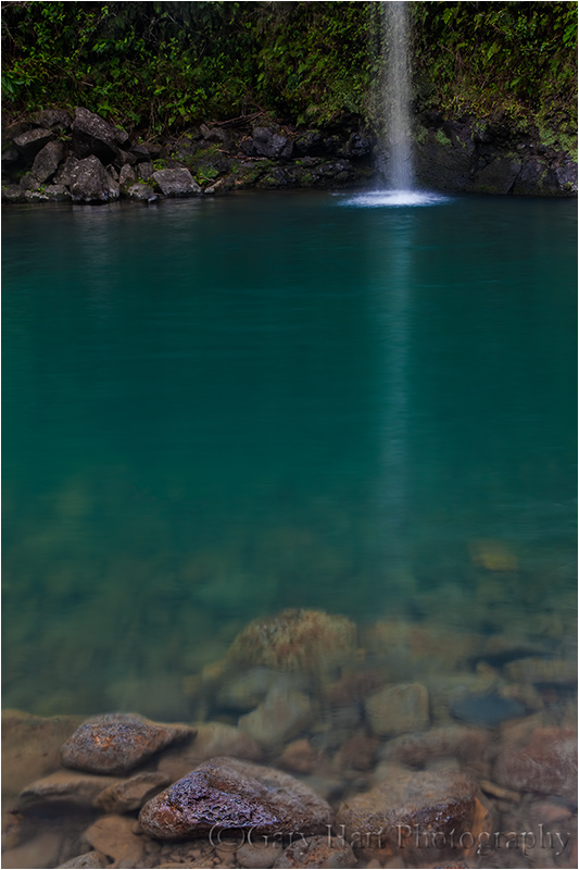 I “discovered” this unnamed beach while scouting locations for my Hawaii workshops. It wasn’t on any maps or in any guidebooks, it was just there, tucked into a narrow strip separating the churning Pacific from lush Kapono-Kalapana Road. Through the trees the beach looked promising, so I pulled into a wide spot and explored more closely. A pair of children’s shorts draping a branch near the road, and a warning sign nailed to a tree, were indications that this not a secret location. I feared the sign would threaten severe consequences to anyone who dared trespass, but it simply said, “Private property: No camping or fires. Please enjoy.” So I did.