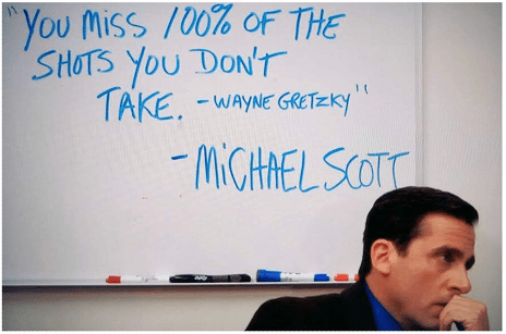 “You miss 100% of the shots you don’t take. — Wayne Gretzky” — Michael Scott