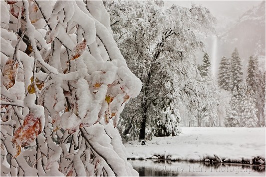 Once the snow arrives, rather than hole up in my room, I’m out shooting. Even though Yosemite’s storms often erase all signs of its most recognizable features, stormy weather is a great time to photograph swirling clouds and accumulating snow in glorious (and rare!) solitude. Nice soft light too.